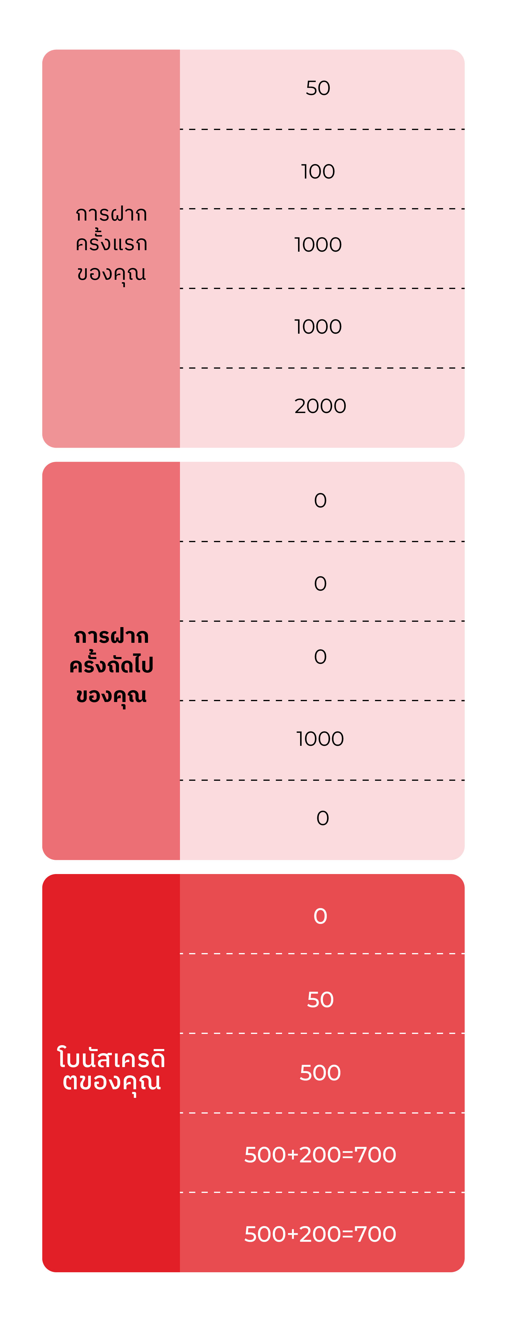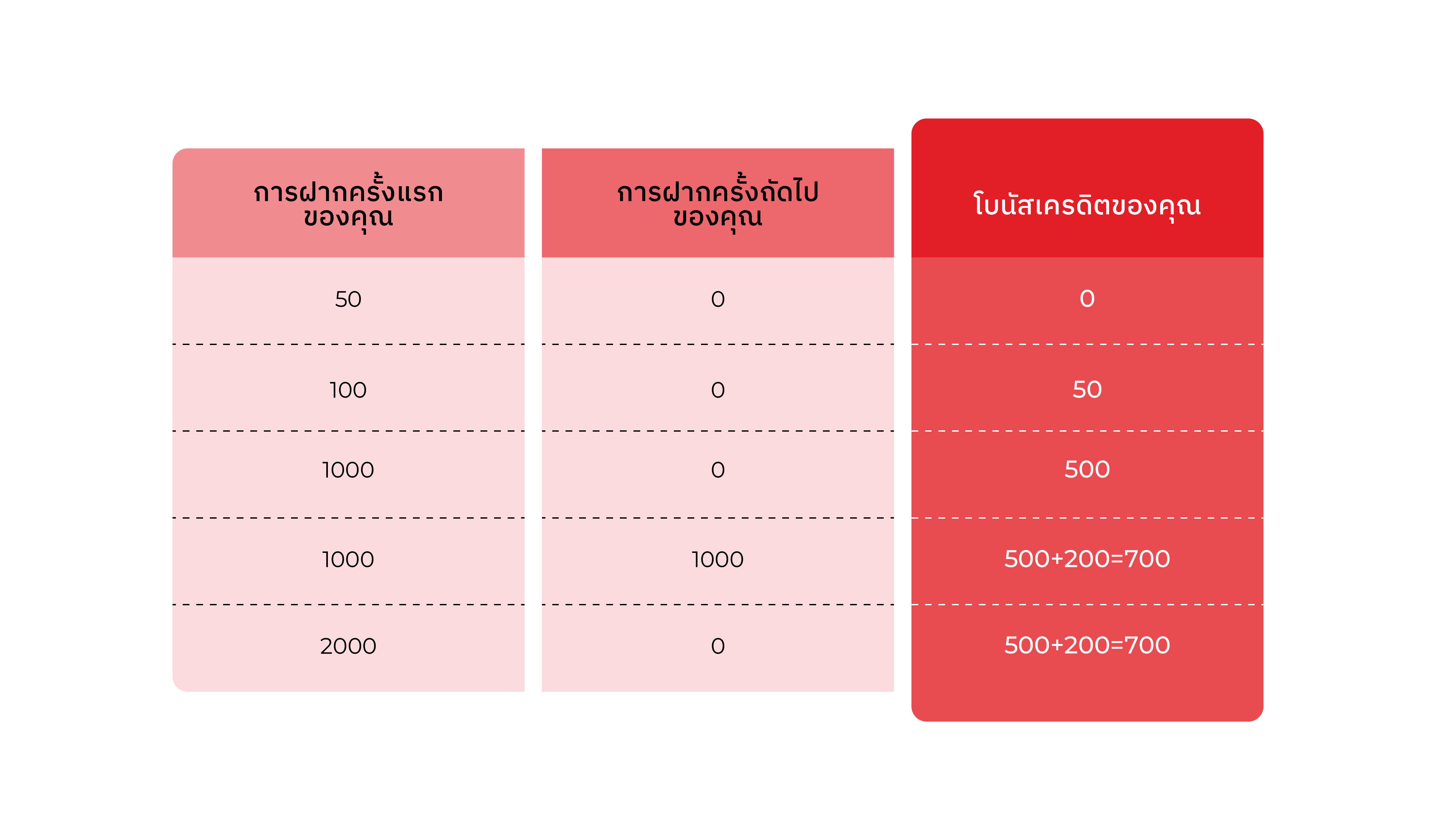 การฝากเงินที่เข้าร่วมแคมเปญได้ต้องทำผ่านช่องทางออนไลน์ หรือการโอนเงินผ่านธนาคารเท่านั้น การโอนเงินภายในบัญชีไม่สามารถเข้าร่วม ได้